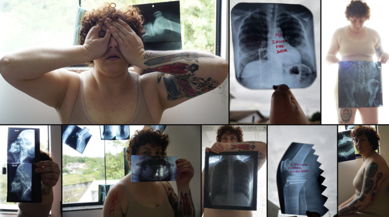 Fotoperformance da egressa Nathielle Wougles, que integrou o produto da pesquisa Corazón Central: Criando Territórios de [R]Existência, do Mestrado Profissional em Artes da Cena da ESCH. Site: https://corazoncentral.com/