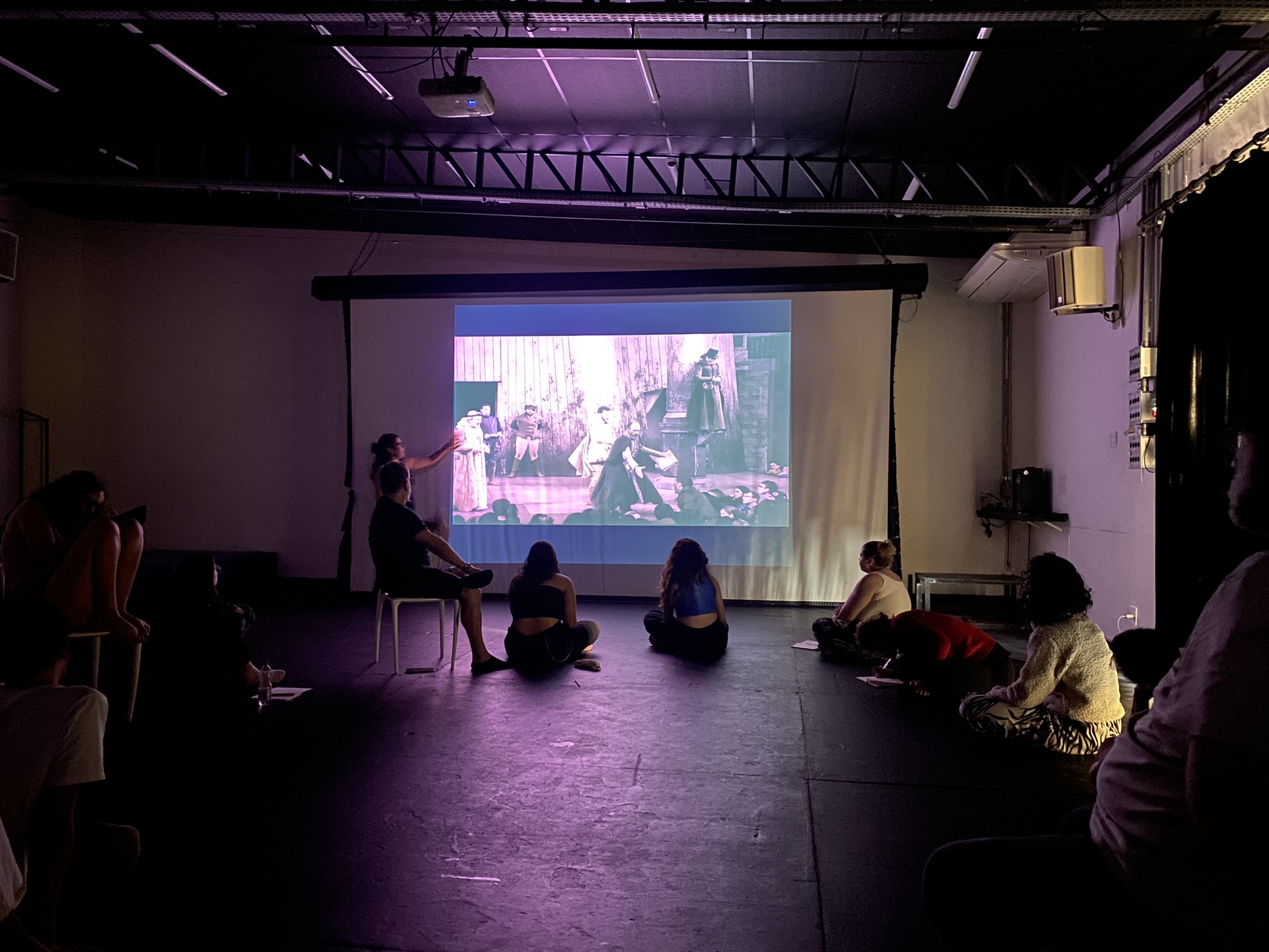 a turma, em conjunto da professora intercambista, apresentou o processo de estudo de performances criadas a partir de trechos de três peças de Shakespeare: “Noite de Reis”, “Sonho de uma Noite de Verão” e “Hamlet”.