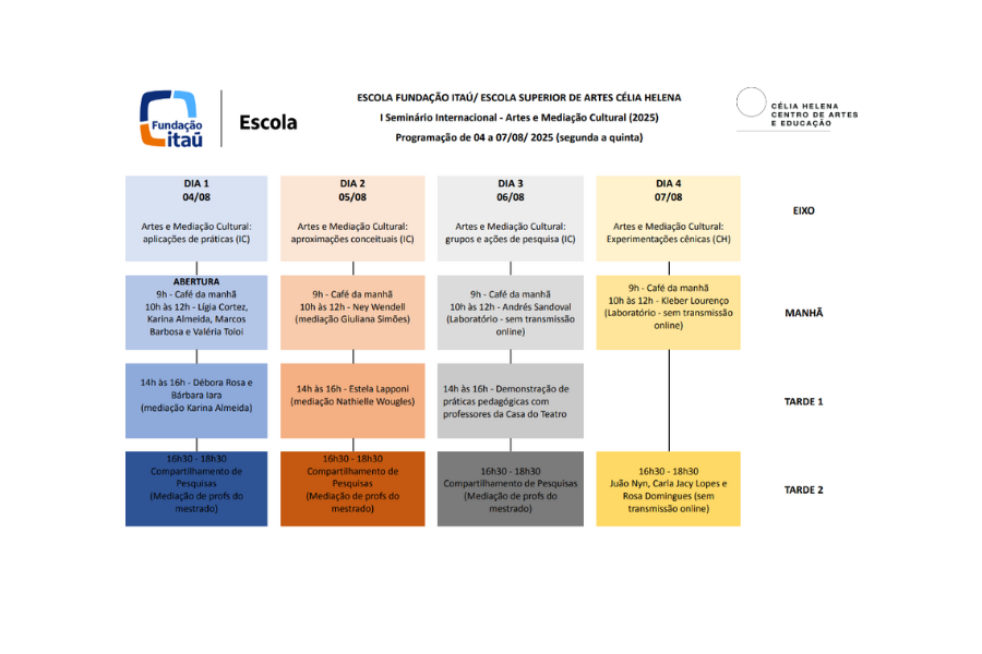 Iniciativa da Escola Superior de Artes Célia Helena (ESCH) em parceria com a Escola Itaú Cultural, o evento é vinculado ao programa de Mestrado Profissional em Artes da Cena — Laboratório em Artes e Mediação Cultural e tem como propósito  difundir e fortalecer pesquisas e práticas artísticas e profissionais relacionadas às artes e a mediação cultural em seus mais diversos contextos e formatos.